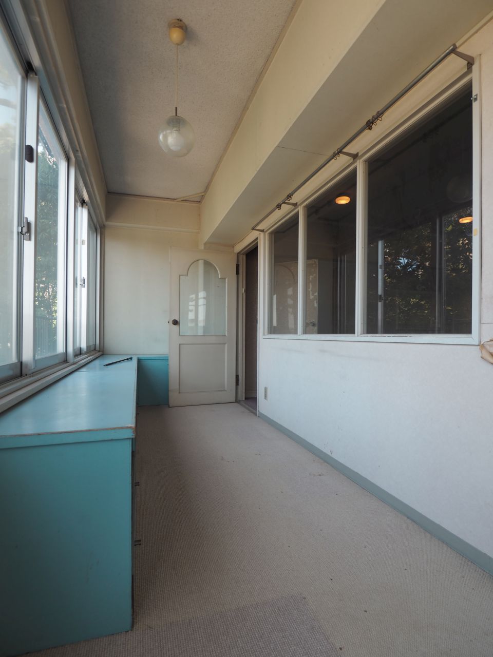 オリジナルのリビングドアはレールを隠して天井から吊り、足元はフラットに。和室の建具も白のレール枠を壁に埋め込み、建具を開けても枠が主張しないようにしています。