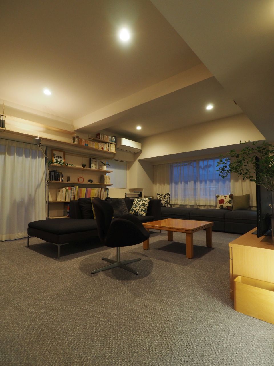 室内の照明は間接照明で照度を落として、静謐な時間が流れる空間に。