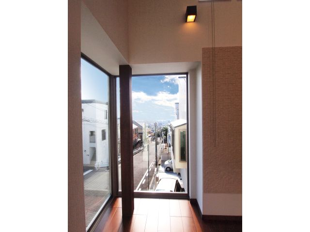 天井をつくっていること。北側区画はリビングのコーナーをガラスにし、より開放的な眺望を得られるような造りにしました。