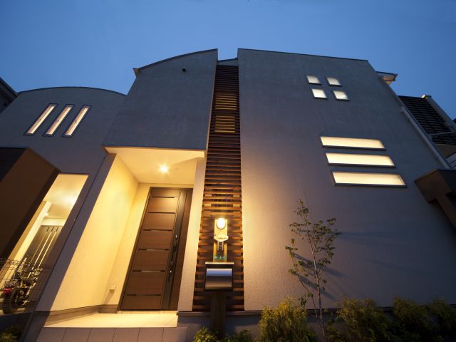 優美な曲線を描く外観と、ボリューム感ある広さ。 発展をとげる阪急「西宮北口」の地にふさわしい、三邸です。 リビングに光を届けるグレーチング素材の廊下や、間接照明をあしらった高天井などのダイナミックな仕様と、玄関横の手洗いスペースや大型のシューズインクロークなどの細やかな工夫。 空間に「遊び」をもたせつつ、毎日の生活にも配慮した、こだわりのプランです。 (所在地:西宮市)