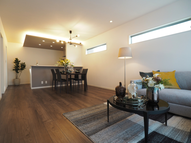 宝塚市の閑静な住宅地での、戸建分譲実績です。 2邸どちらもインナーバルコニーで外観に奥行をもたせ、北側区画には植栽の緑と調和する木目調の壁面を設けています。前面道路からの目隠しとして、ポーチ正面に壁を立ち上げ、タイルで美しい陰影を。 ダイニングの間接照明、モザイク壁画のようなエコカラットなど、意匠デザインで様々な表情を演出。玄関を入るとタイルの床が自然光をやわらかく反射し、美術館のような佇まいで訪れる人を迎える家です。