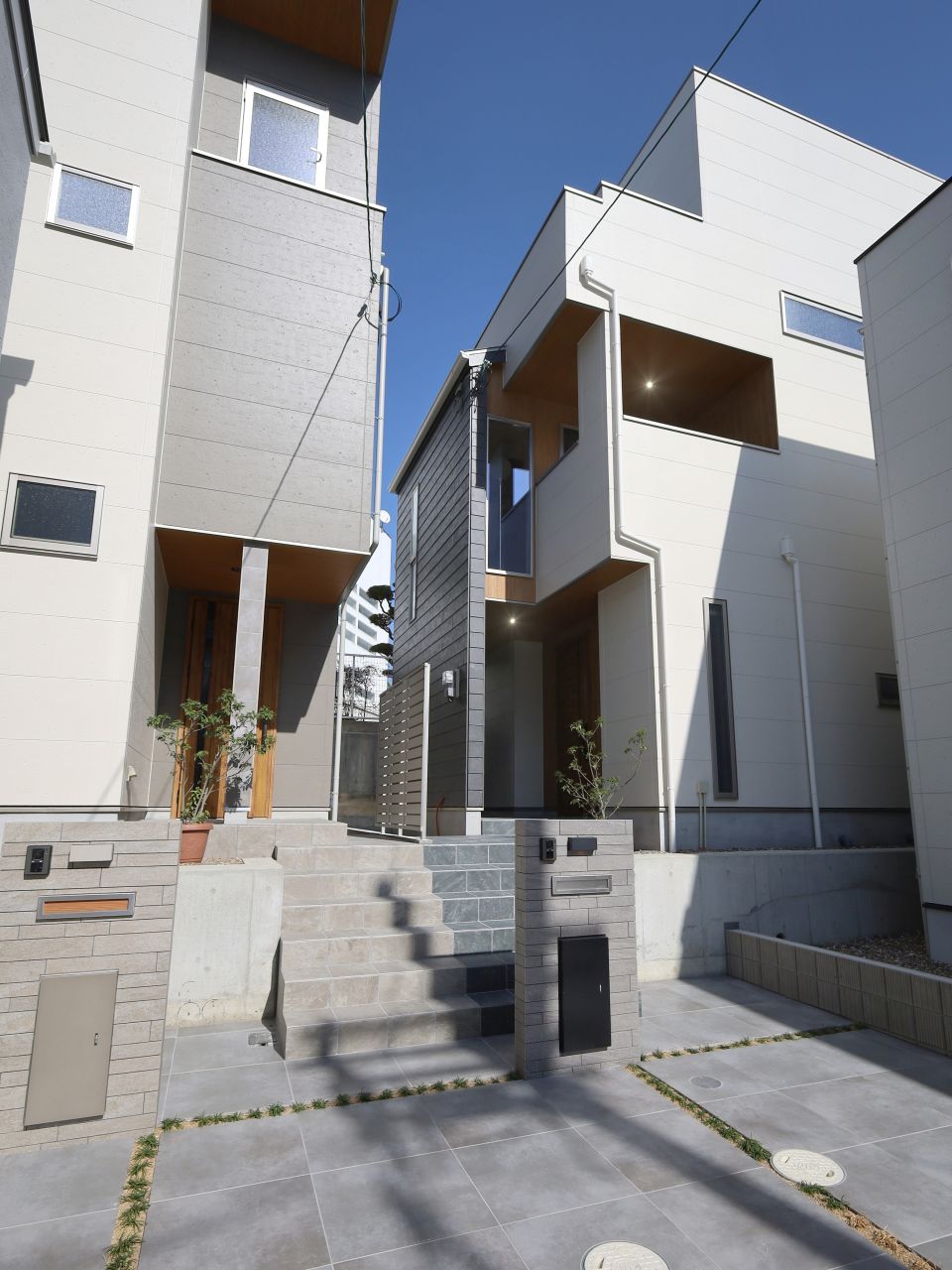 6邸それぞれに個性を持たせつつ、閑静な街並みになじむ家々が完成しました。