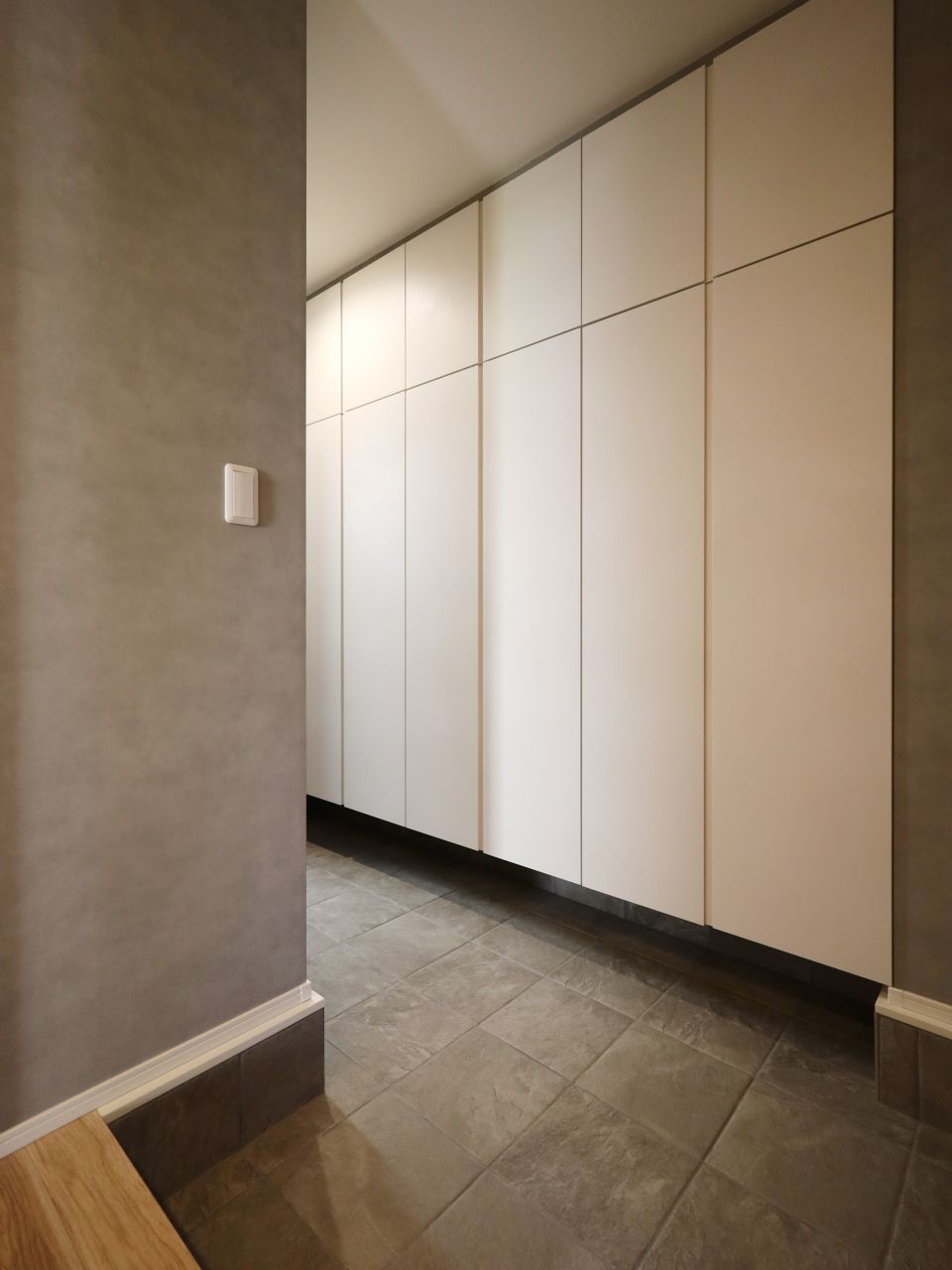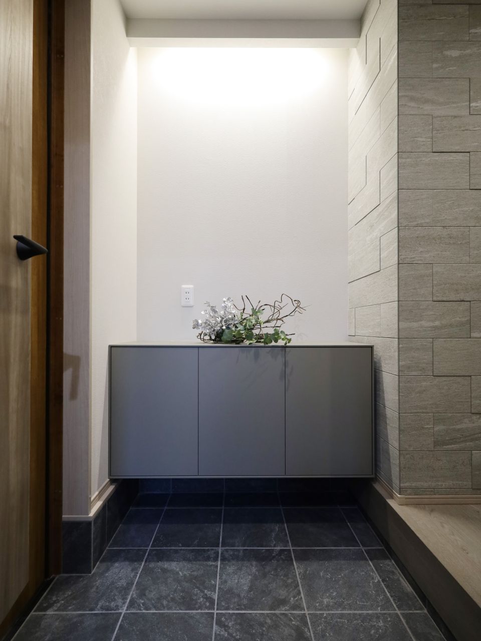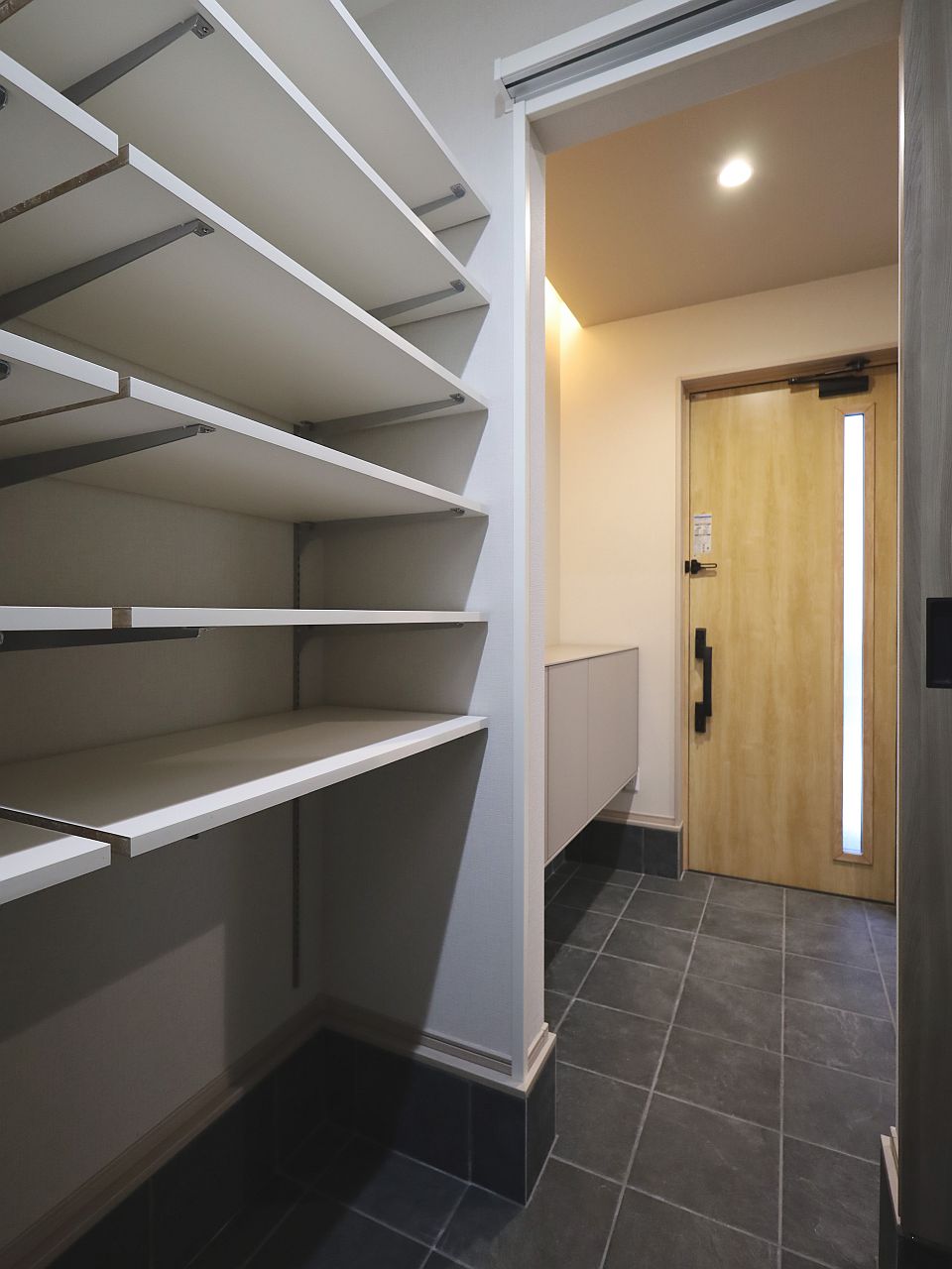 プランはそれぞれ異なりますが、共通するのは玄関に大容量の土間シューズインクロークをもうけ、ホテルのクロークのような空間にしていること。玄関にゆとりを作ることで、家全体がより広く感じられます。