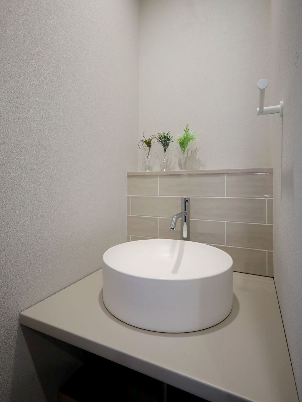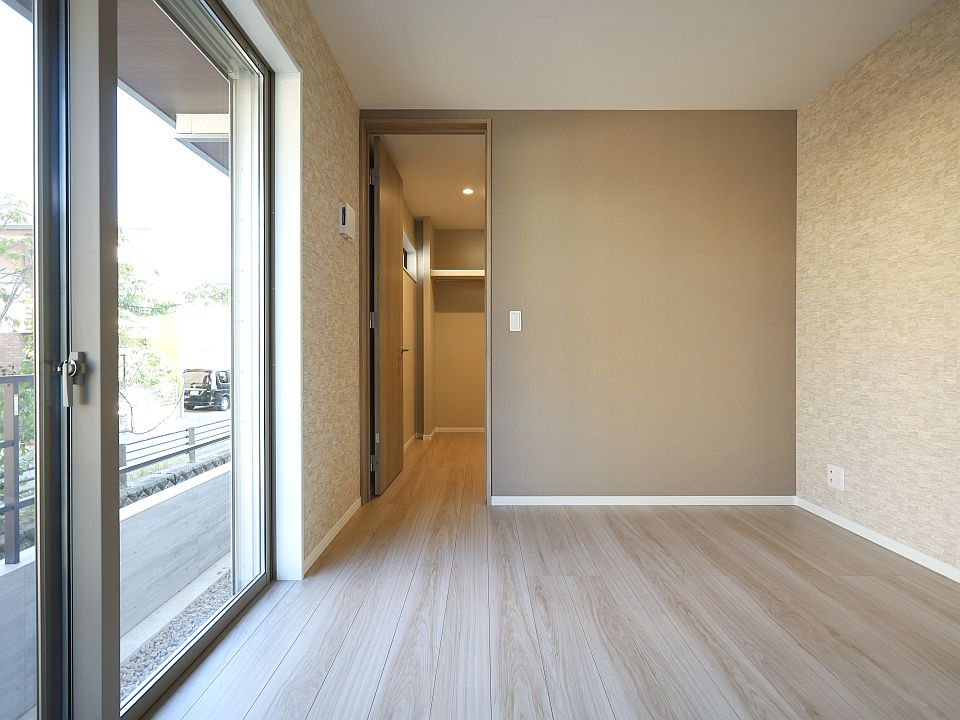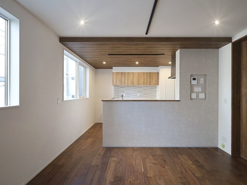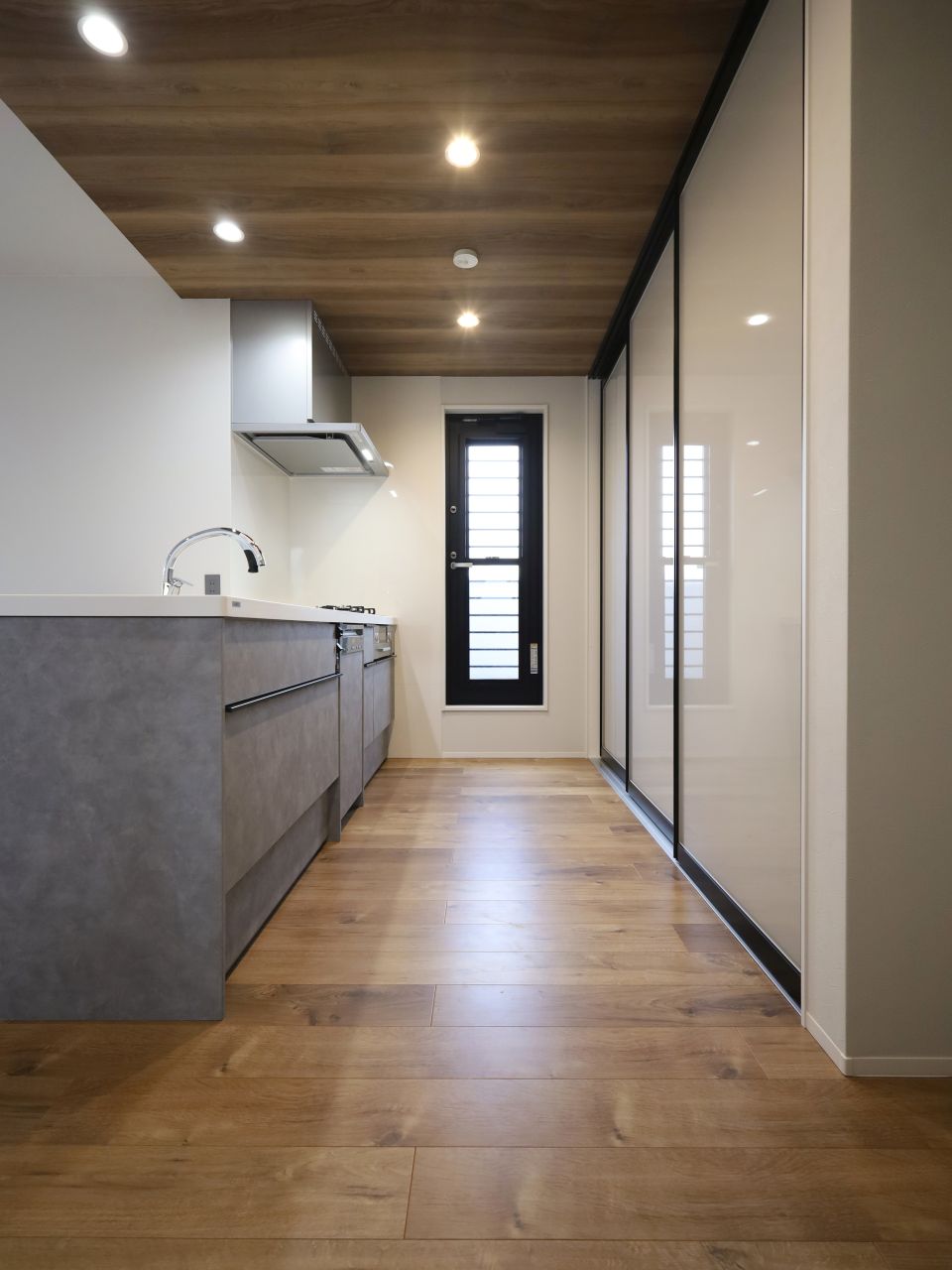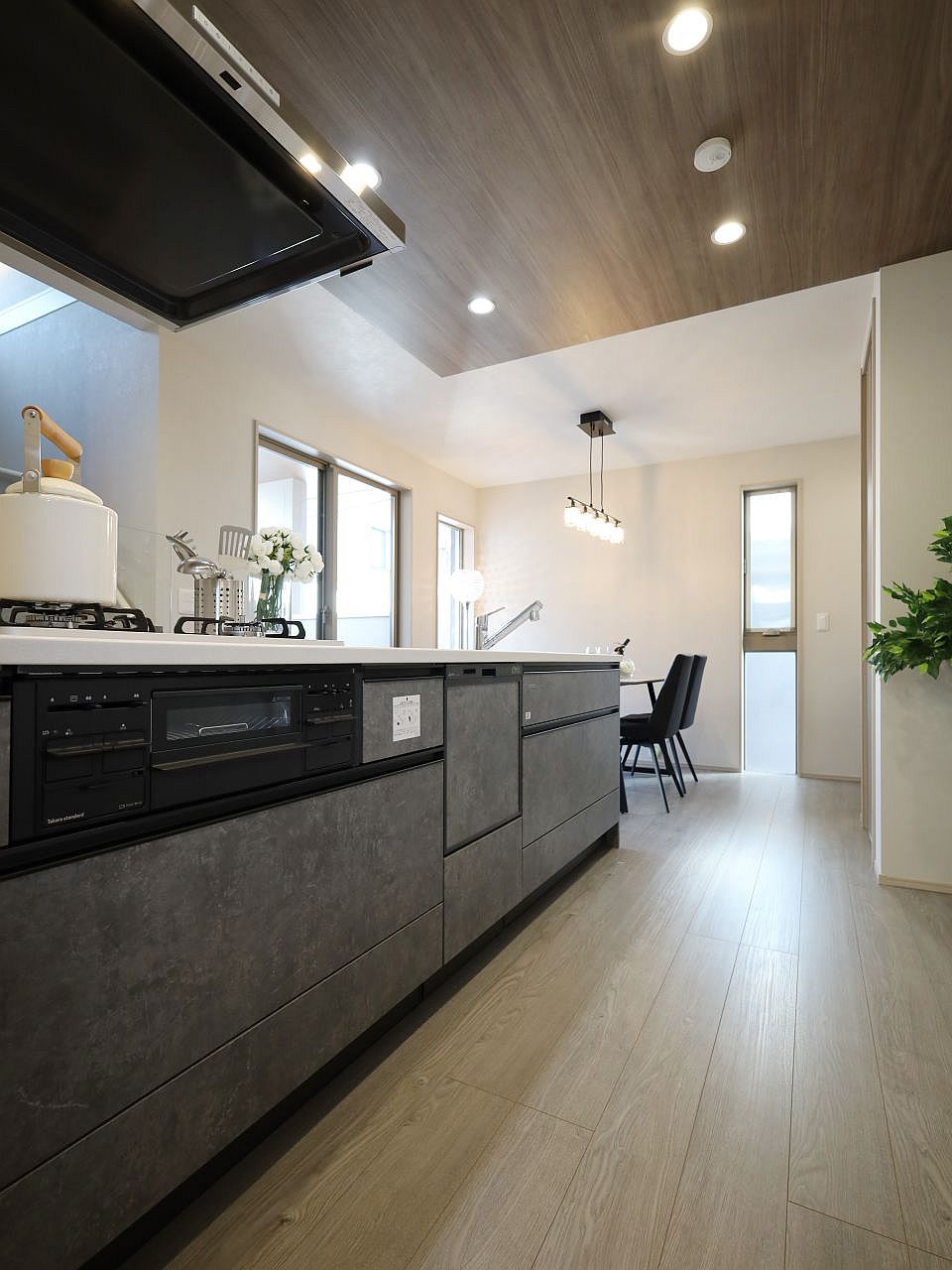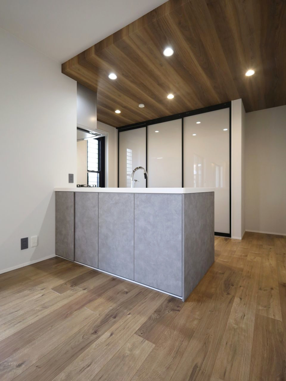 またエクステリア・インテリアともに「真っ白で明るい空間」というよりは落ち着きのある素材や色を選び、光と影のコントラストが美しく出るようなデザインに。間接照明で、エコカラットの凹凸やアクセントクロスが美しく浮かび上がる工夫も施しています。