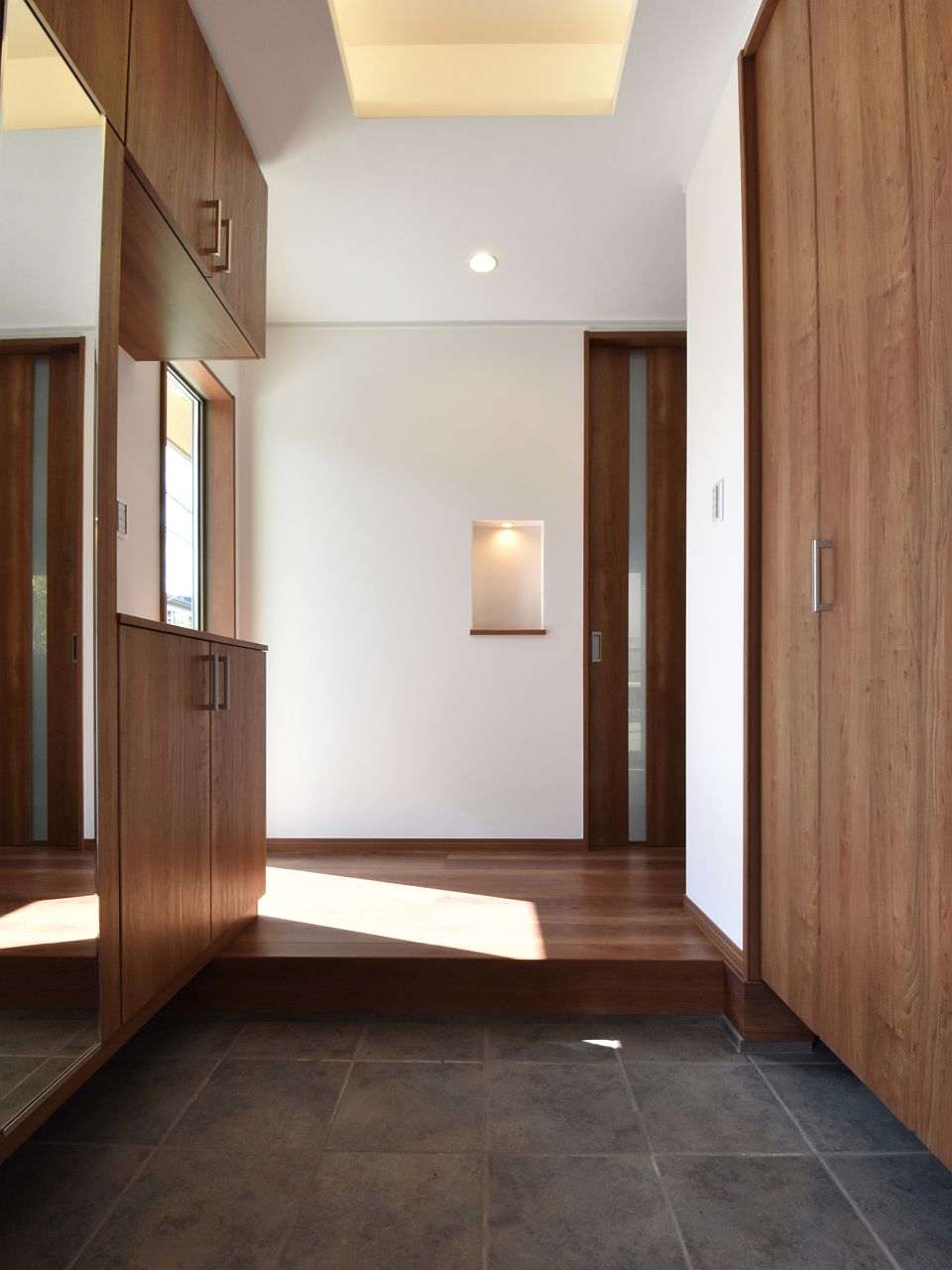 前面道路が広いため明るい陽の光に包まれ、さらに玄関ホールには大きなFIXガラスから光がさし込みます。