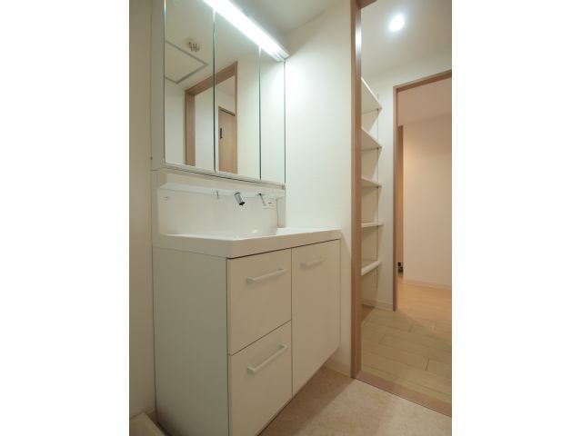 奥行のあるキッチンスペースをより有効活用するため、パントリーを新設。また、リビングと洋室の間仕切りを調整して、リビング収納も新設しました。